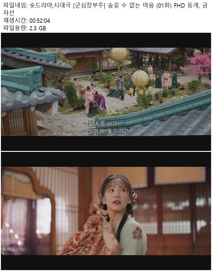 숏드라마,시대극 [군심장부주] 숨길 수 없는 마음 (01화) FHD 등개, 금자선