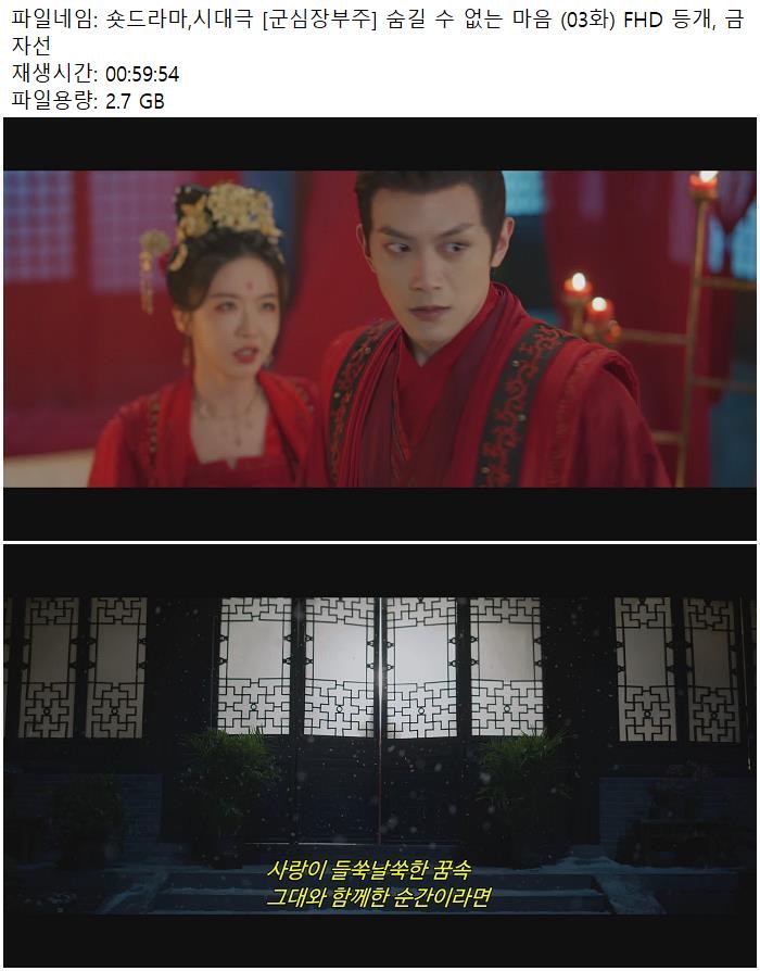 숏드라마,시대극 [군심장부주] 숨길 수 없는 마음 (03화) FHD 등개, 금자선