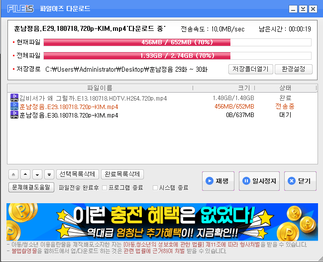 바이러스 치료후에는... 이렇게.. 다운로드가 잘되게 되었답니다.