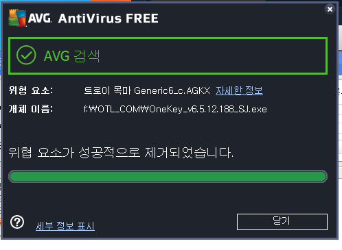 아래 그림의 모두 제거 버튼을 눌러서.. 모두 제거하여 치료 완료하였답니다.