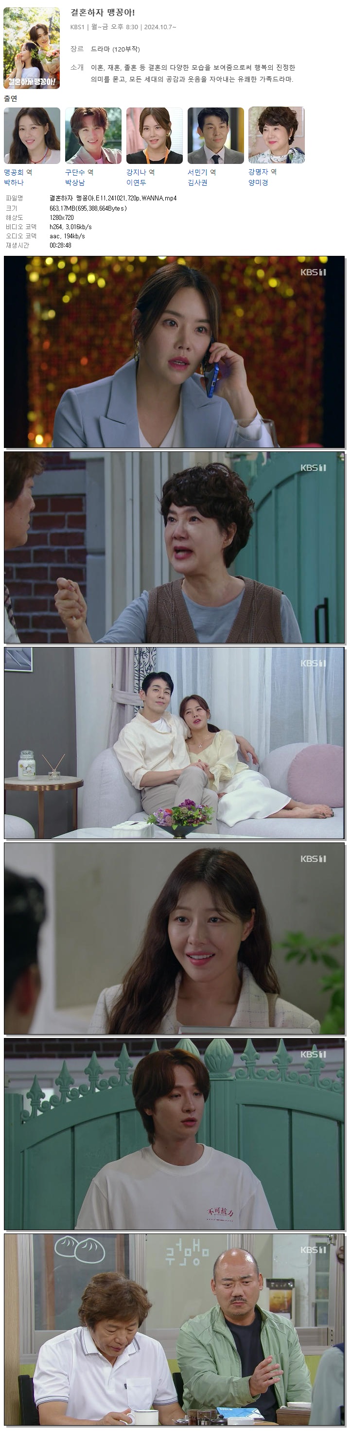 [KBS] 결혼하자 맹꽁아.E11.241021.720p.WANNA [박하나, 박상남, 이연두]