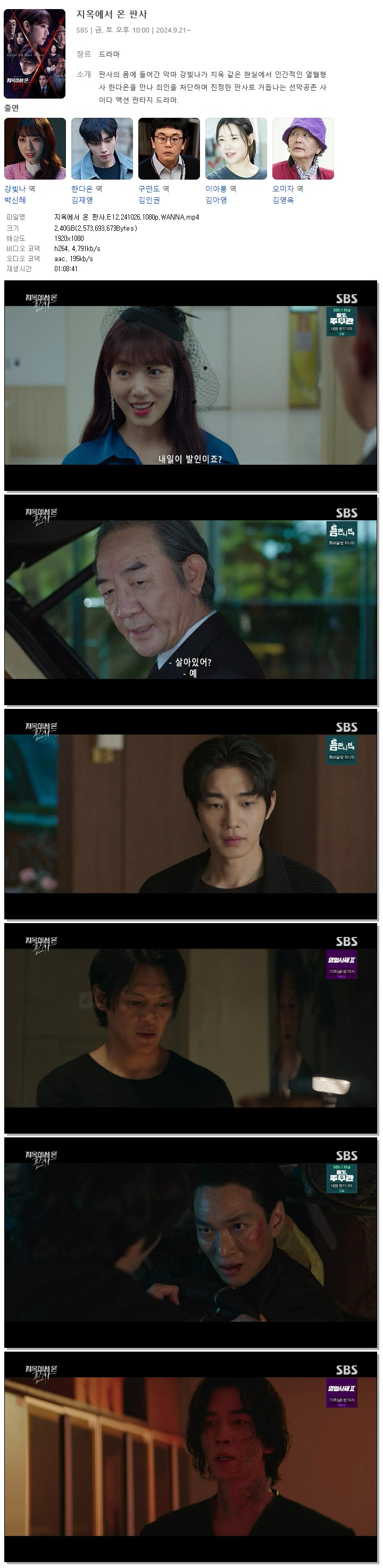 [SBS] 지옥에서 온 판사.E12.241026.1080p.WANNA [박신혜, 김재영, 김인권]