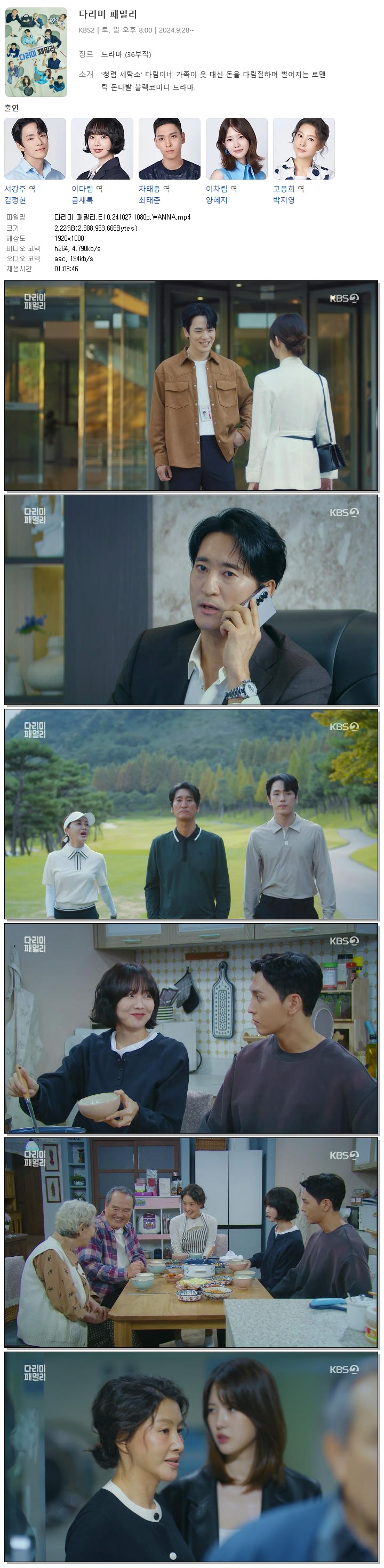 [KBS] 다리미 패밀리.E10.241027.1080p.WANNA [김정현, 금새록, 박지영]