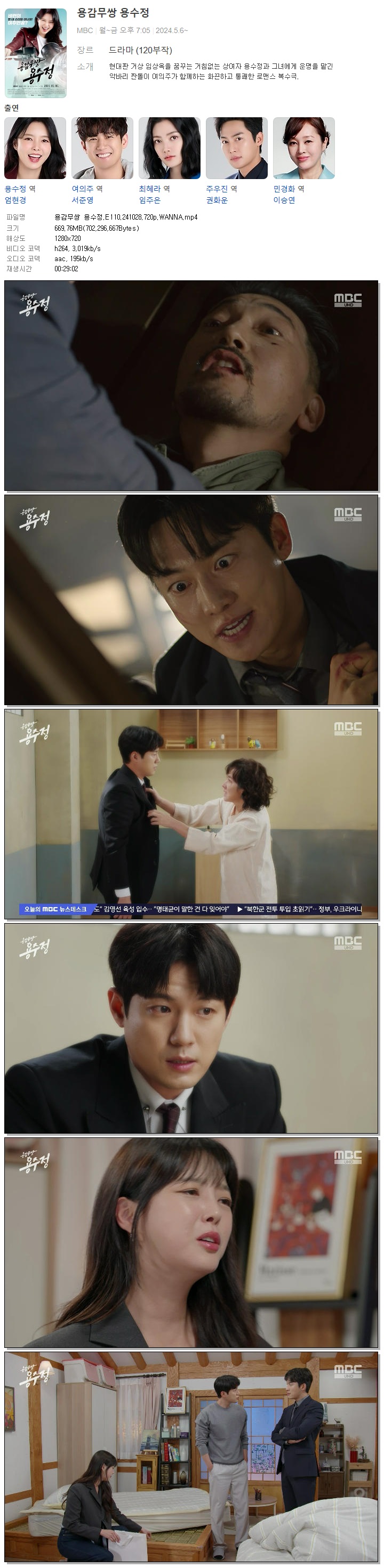 [MBC] 용감무쌍 용수정, 110회, 241028, 720p, WANNA [엄현경, 서준영, 임주은]