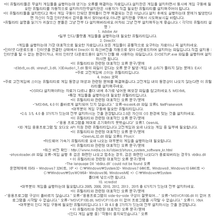 무설치게임 각종 오류 해결 프로그램 모음[dll vb6ko 검은화면 작동중지 등등]