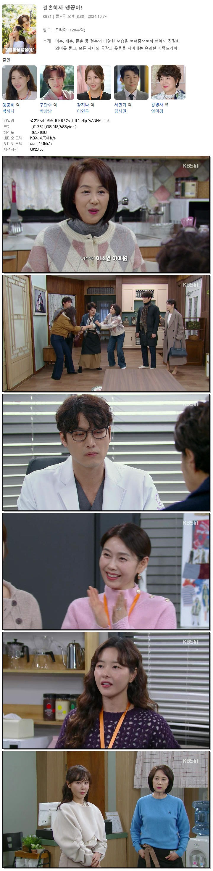 [KBS1] 결혼하자 맹꽁아.E67.250110.1080p.WANNA[박하나, 박상남].mp4