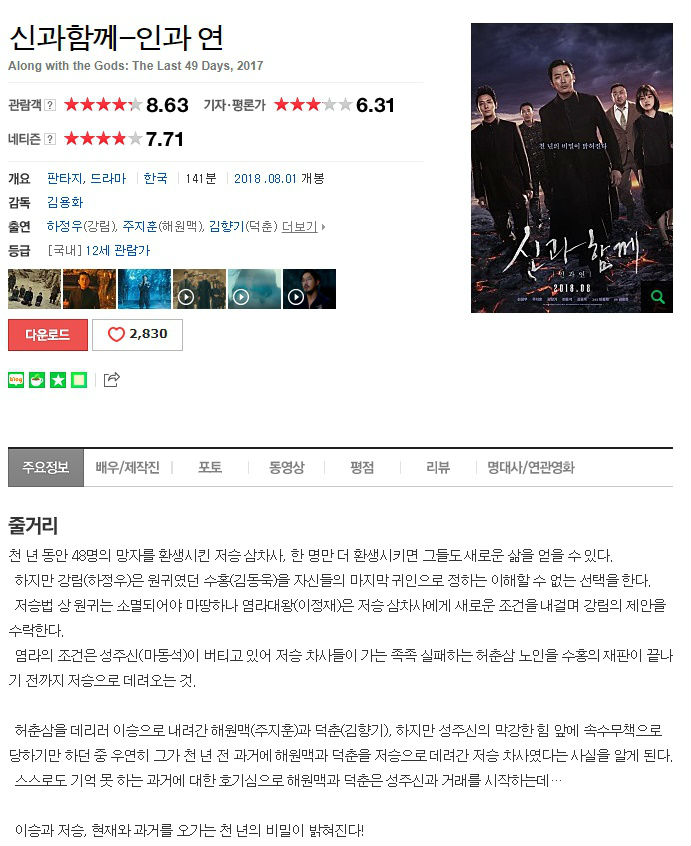 [신과함께2 인과 연] 하정우x주지훈x김향기! 밝혀지는 천년의 비밀!.mp4