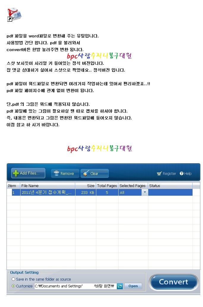 PDF 파일을 word로 변환 유틸