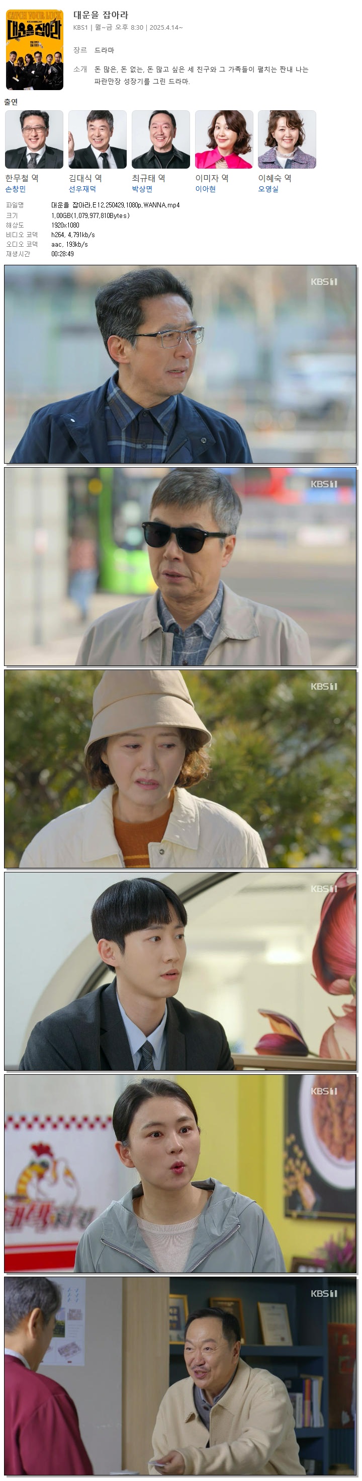[KBS1] 대운을 잡아라.E12.250429.1080p.WANNA[손창민, 이아현]