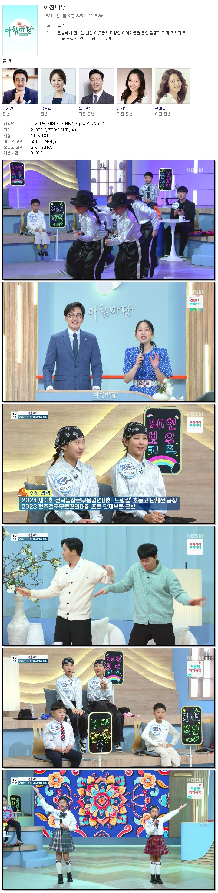 [KBS1] 아침마당.E9898.250505.1080p.WANNA[김재원, 엄지인]