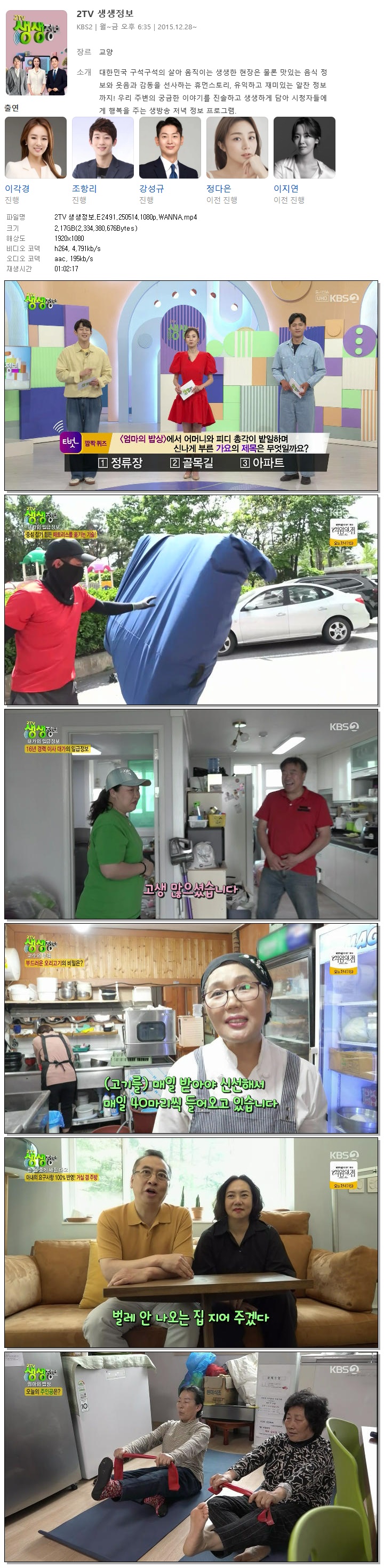 [KBS2] 2TV 생생정보.E2491.250514.1080p.WANNA[이각경, 조항리]