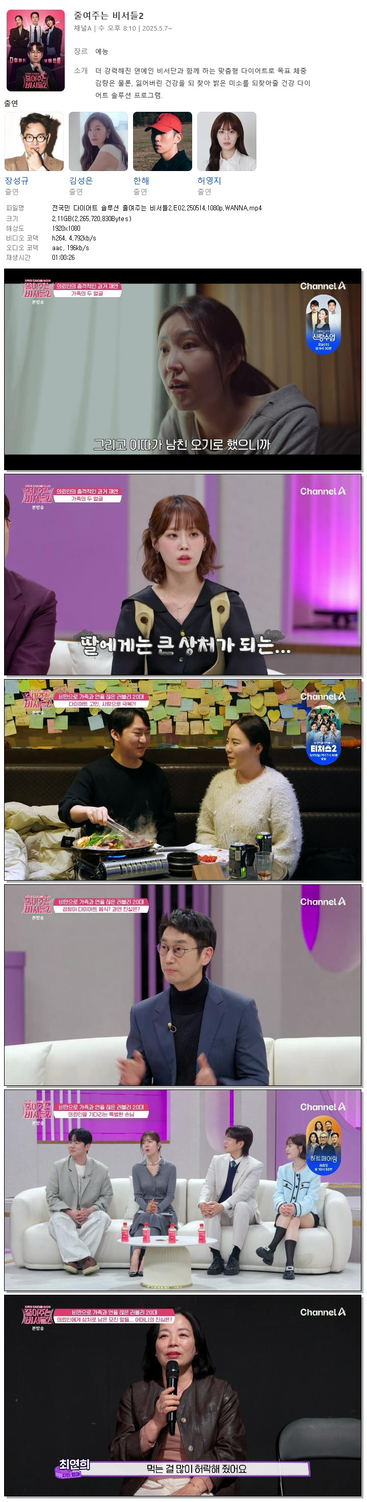 [채널A] 전국민 다이어트 솔루션 줄여주는 비서들2.E02.250514.1080p.WANNA[장성규, 허영지].mp4