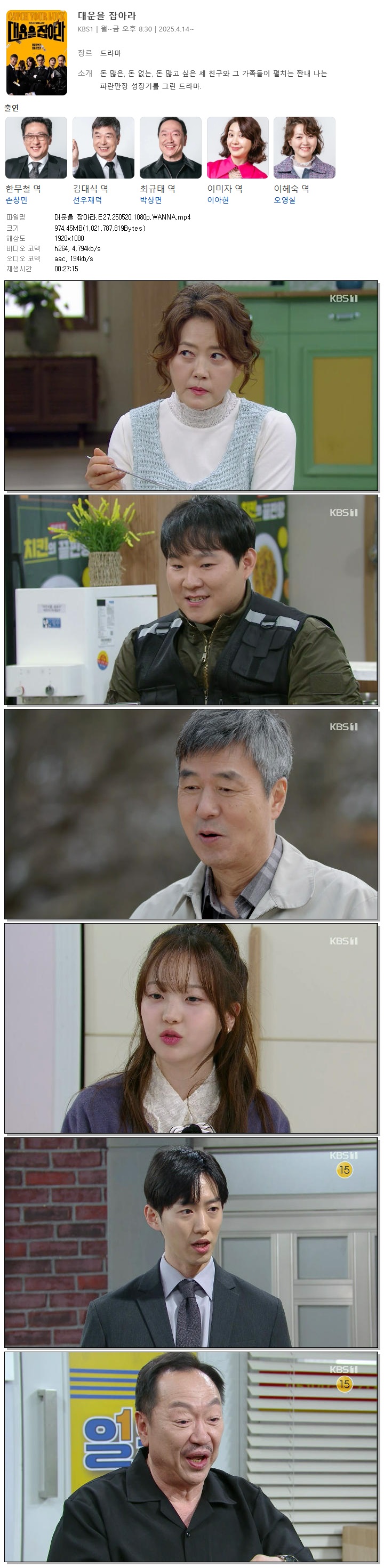 [KBS1] 대운을 잡아라.E27.250520.1080p.WANNA[손창민, 이아현]