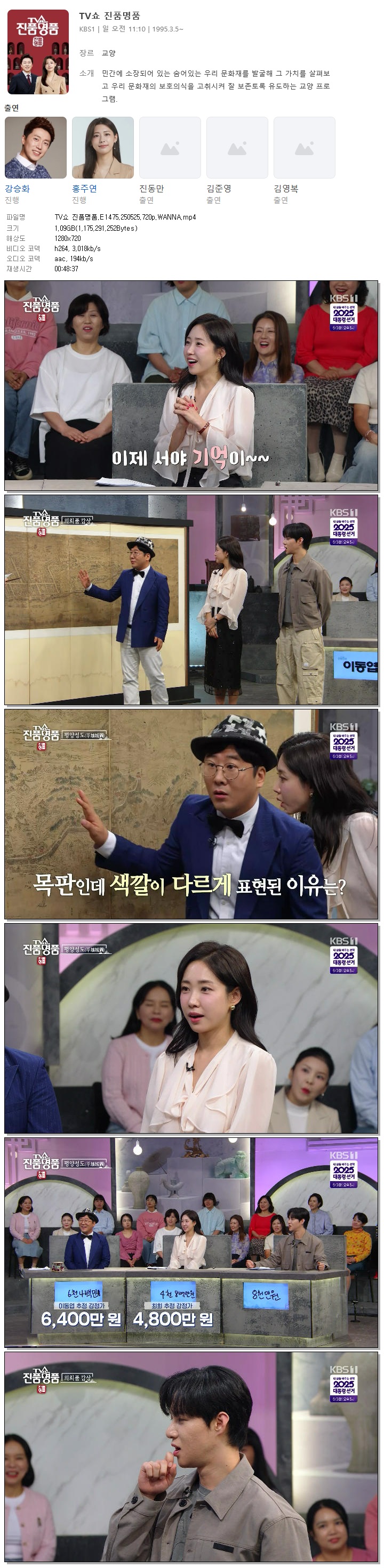 [KBS1] TV쇼 진품명품.E1475.250525.720p.WANNA[강승화, 진동만]
