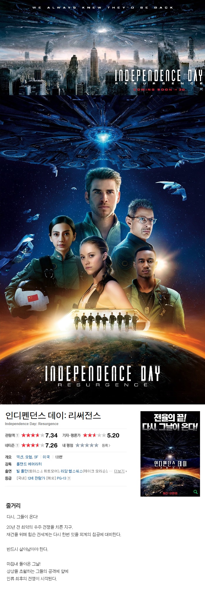 인류 최후의 날 인디펜던스 데이 - 리써전스 초대형 SF 액션 1080p 한글