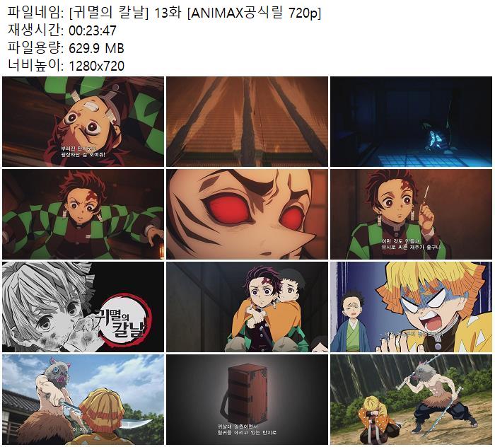 [귀멸의 칼날] 13화 [ANIMAX공식릴 720p]