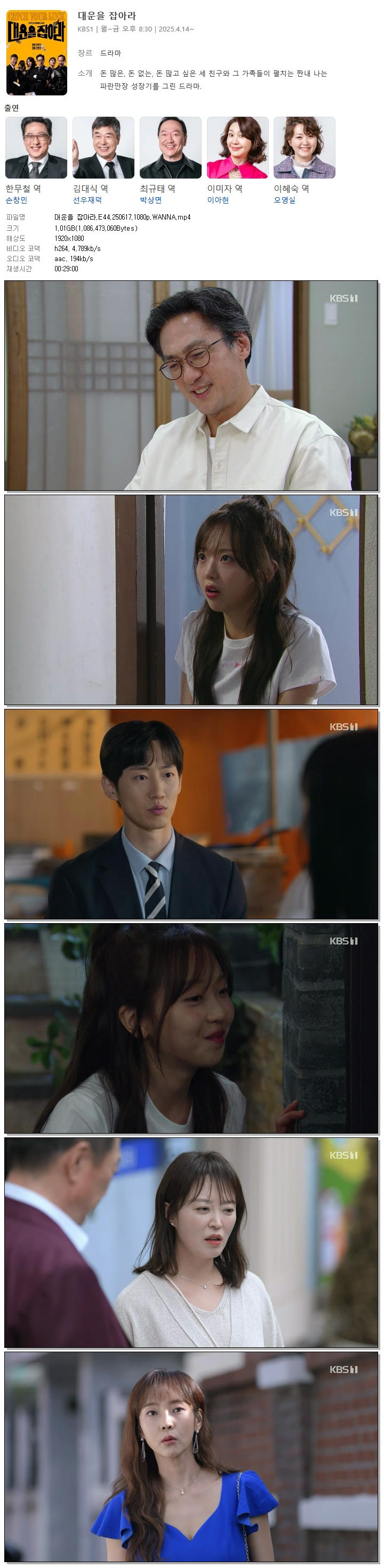 [KBS1] 대운을 잡아라.E44.250617.1080p.WANNA[손창민, 이아현].mp4