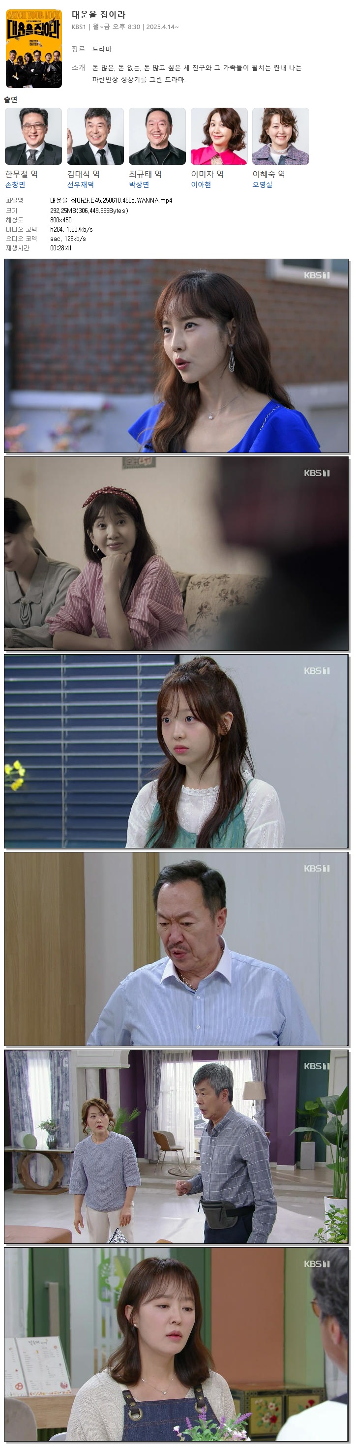 [KBS1] 대운을 잡아라.E45.250618.450p.WANNA[손창민, 이아현].mp4