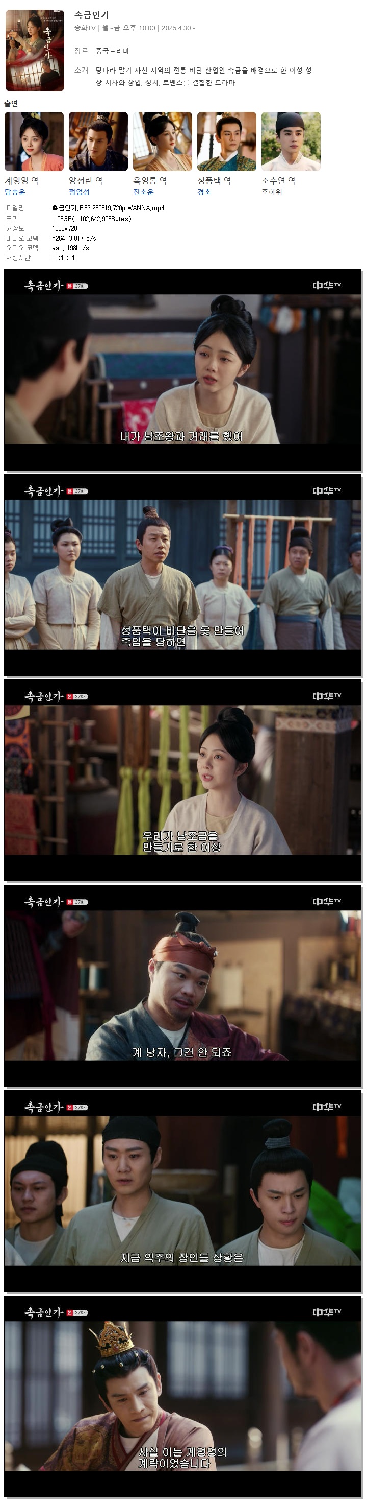 [중화TV] 촉금인가.E37.250619.720p.WANNA[담송운, 정업성]
