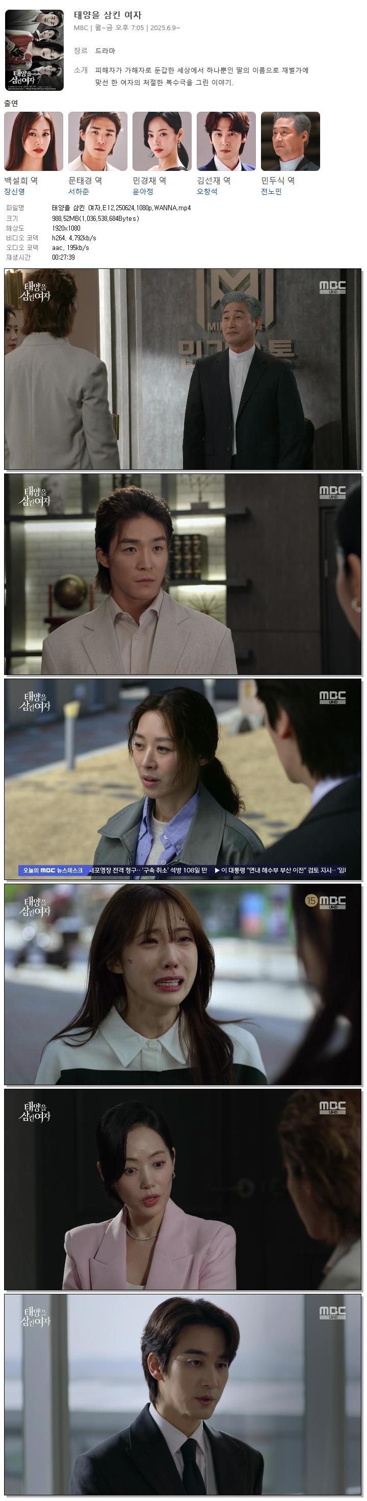 [MBC] 태양을 삼킨 여자.E12.250624.1080p.WANNA[장신영, 서하준]