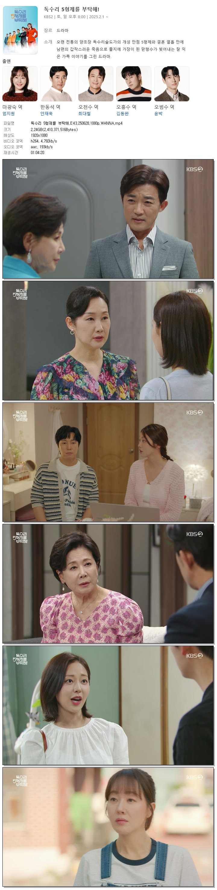 [KBS2] 독수리 5형제를 부탁해.E43.250628.1080p.WANNA[엄지원, 안재욱].mp4