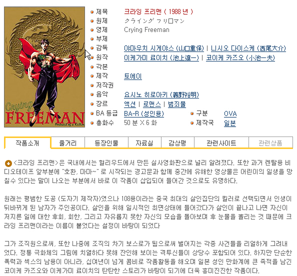 [인생] 크라잉 프리맨 [OVA] 01-06완결 -모험 범죄 스릴러 액션-