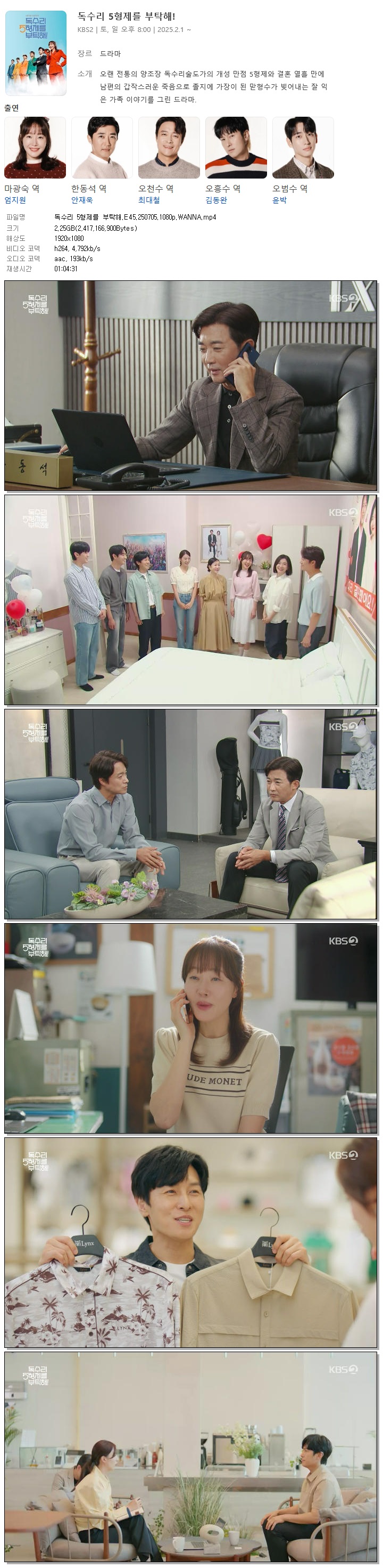 [KBS2] 독수리 5형제를 부탁해.E45.250705.1080p.WANNA[엄지원, 안재욱].mp4
