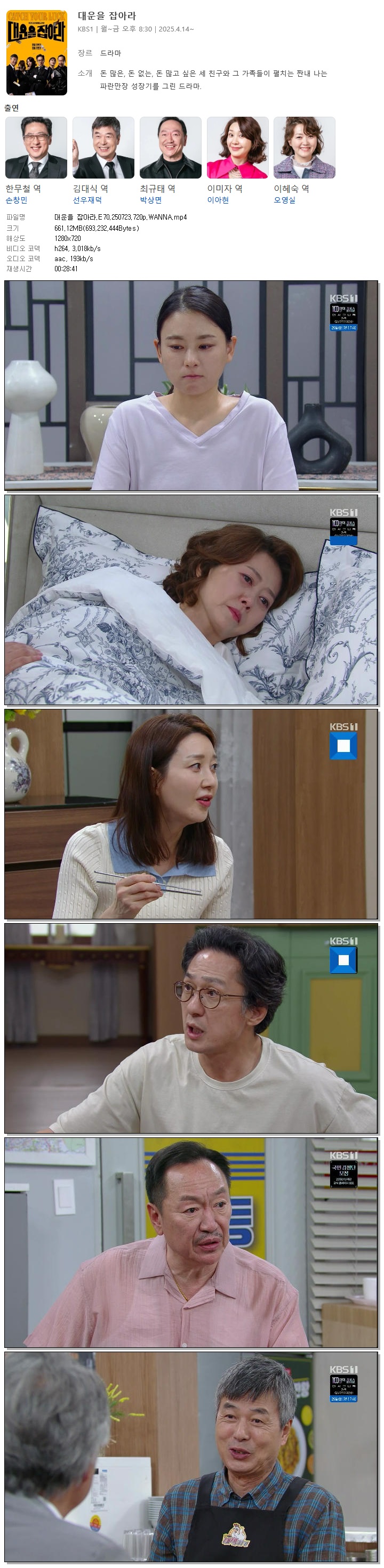 [KBS1] 대운을 잡아라.E70.250723.720p.WANNA[손창민, 이아현]
