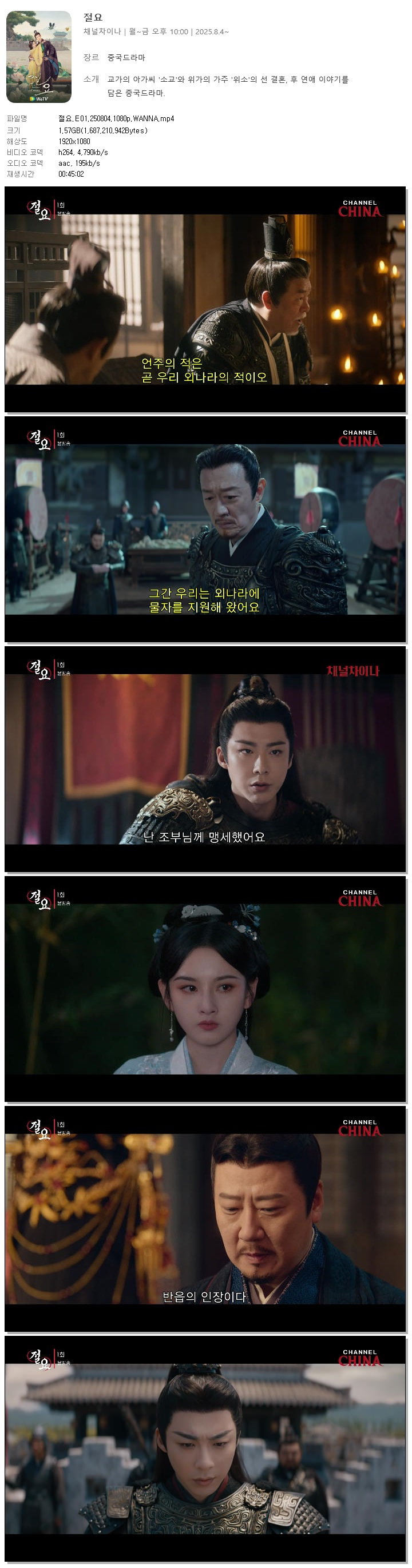 [채널차이나] 절요.E01.250804.1080p.WANNA[송조아, 류우녕]