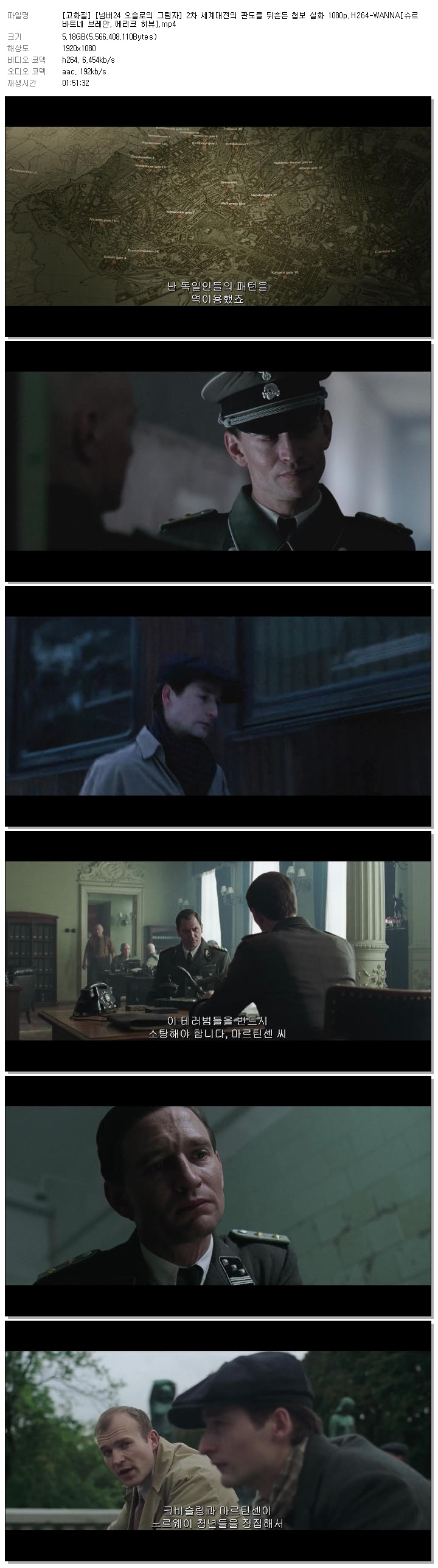 [고화질] [넘버24 오슬로의 그림자] 2차 세계대전의 판도를 뒤흔든 첩보 실화 1080p.H264-WANNA[슈르 바트네 브레안, 에리크 히뷰].mp4