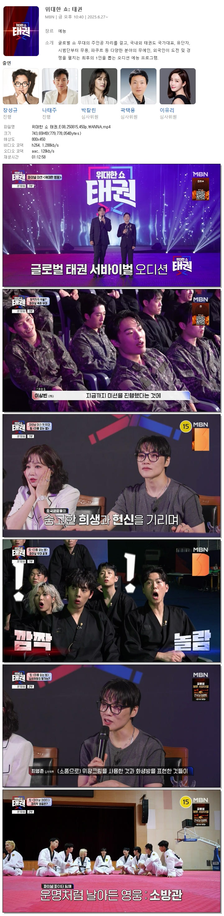[MBN] 위대한 쇼 태권.E08.250815.450p.WANNA[장성규, 나태주]
