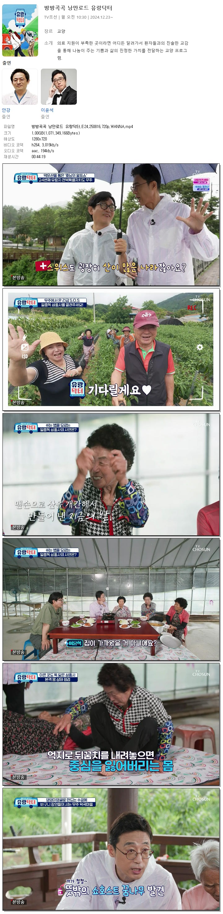 [TV조선] 방방곡곡 낭만로드 유랑닥터.E24.250816.720p.WANNA[안강, 이윤석]
