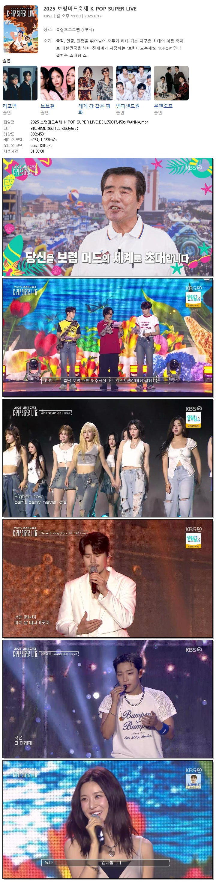 [KBS2] 2025 보령머드축제 K POP SUPER LIVE.E01.250817.450p.WANNA[라포엠, 브브걸]