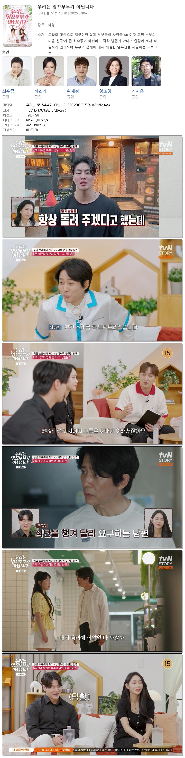 [TVN STORY] 우리는 잉꼬부부가 아닙니다.E08.250818.720p.WANNA[최수종, 하희라].mp4