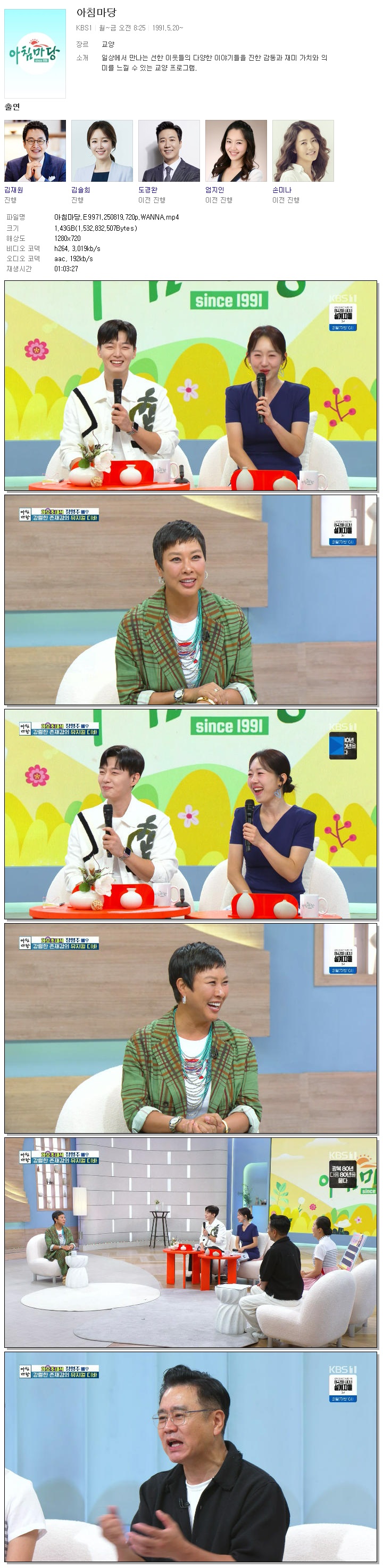 [KBS1] 아침마당.E9971.250819.720p.WANNA[김재원, 엄지인].mp4