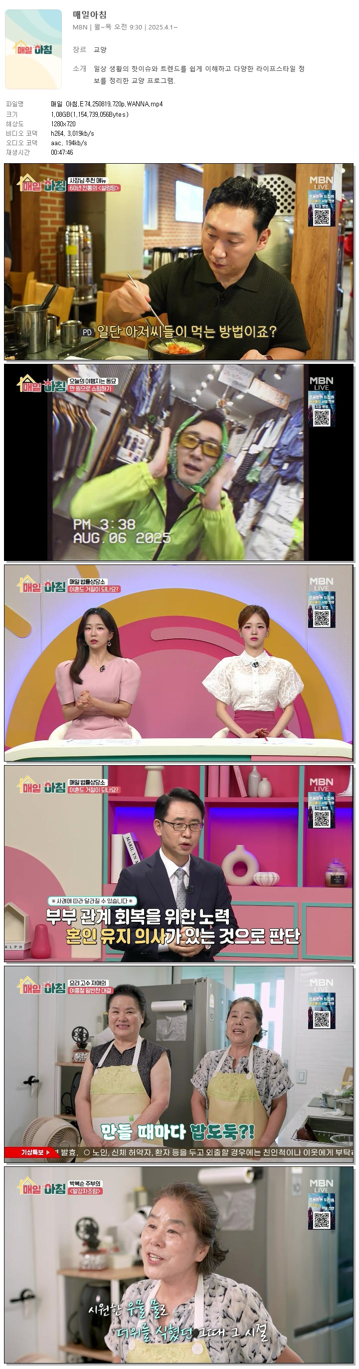 [MBN] 매일 아침.E74.250819.720p.WANNA[한혜원, 이정수]