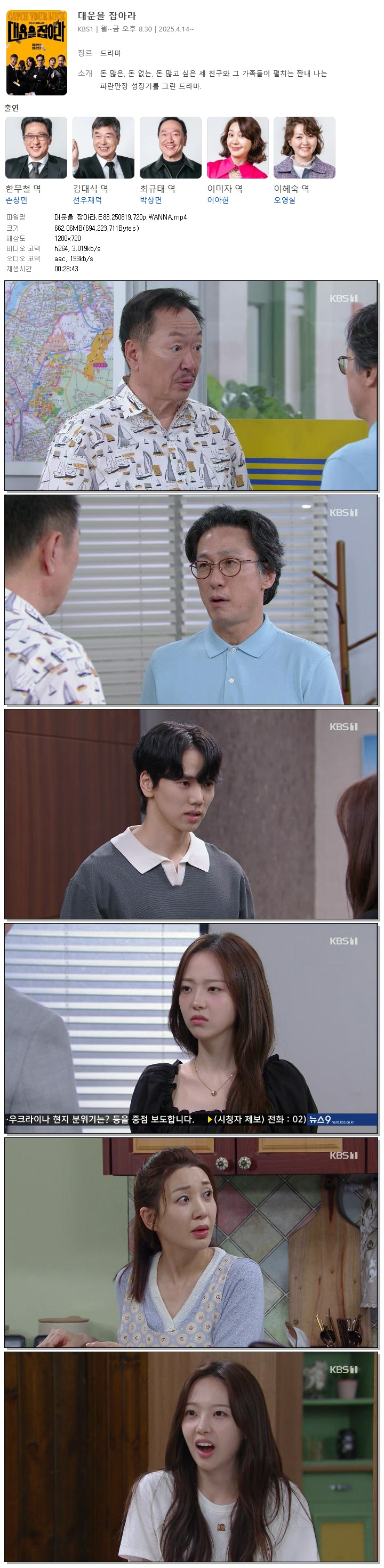 [KBS1] 대운을 잡아라.E88.250819.720p.WANNA[손창민, 이아현].mp4