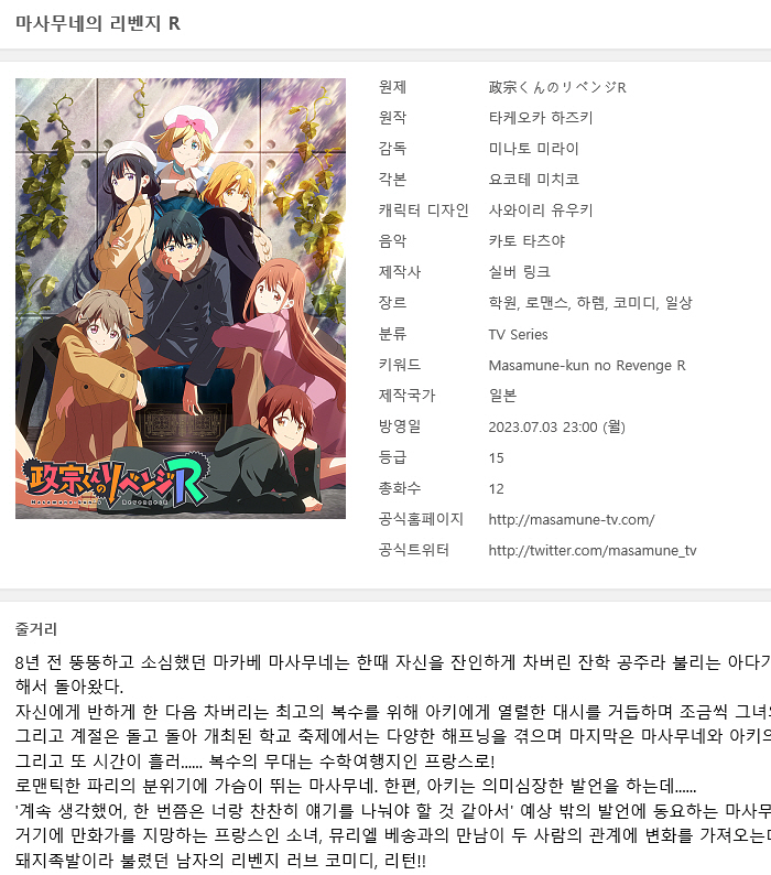 [!2기!] 마사무네의 리벤지 R - 01~12(완)