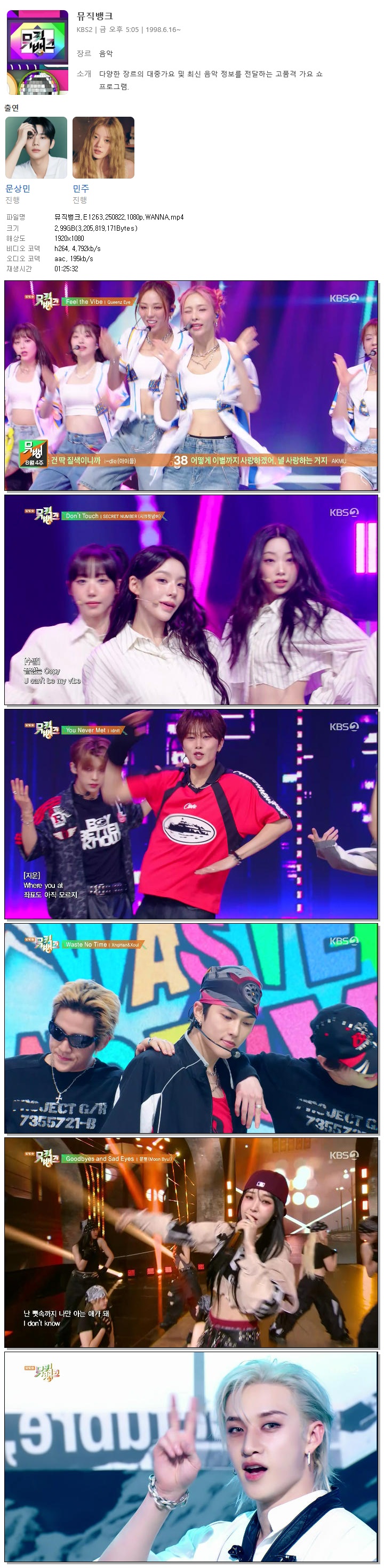 [KBS2] 뮤직뱅크.E1263.250822.1080p.WANNA[케플러, 문별]