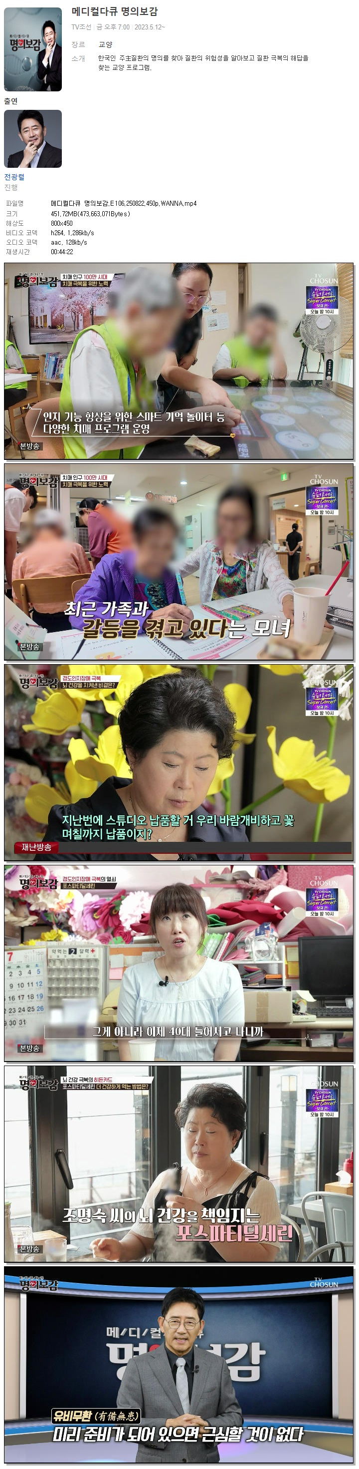 [TV조선] 메디컬다큐 명의보감.E106.250822.450p.WANNA[전광렬].mp4