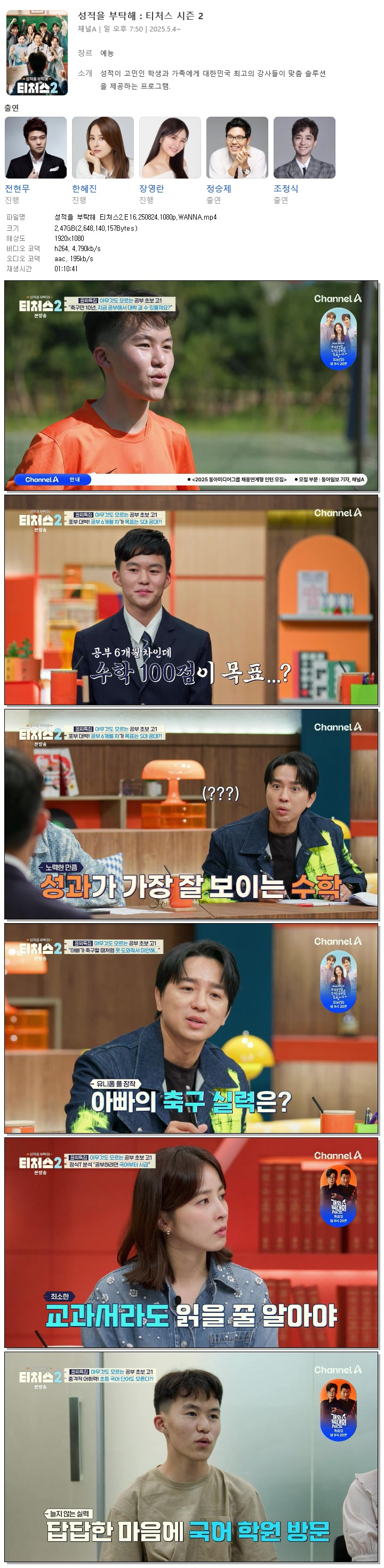 [채널A] 성적을 부탁해 티처스2.E16.250824.1080p.WANNA[전현무, 한혜진]