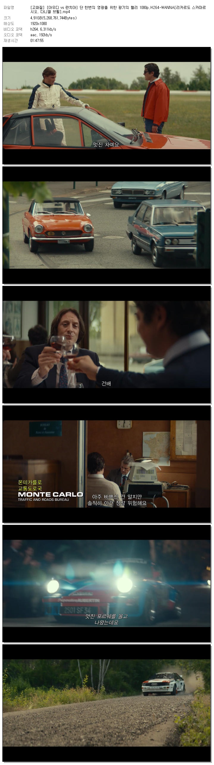[고화질] [아우디 vs 란치아] 단 한번의 영광을 위한 광기의 랠리 1080p.H264-WANNA[리카르도 스카마르시오, 다니엘 브륄].mp4