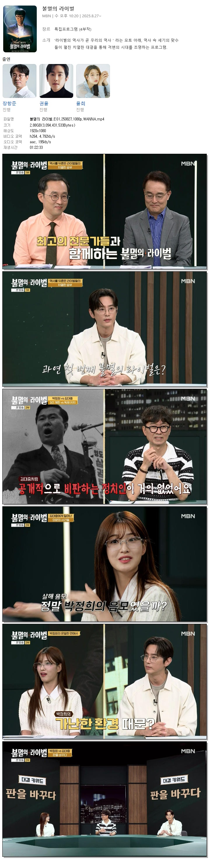 [MBN] 불멸의 라이벌.E01.250827.1080p.WANNA[장항준, 권율]