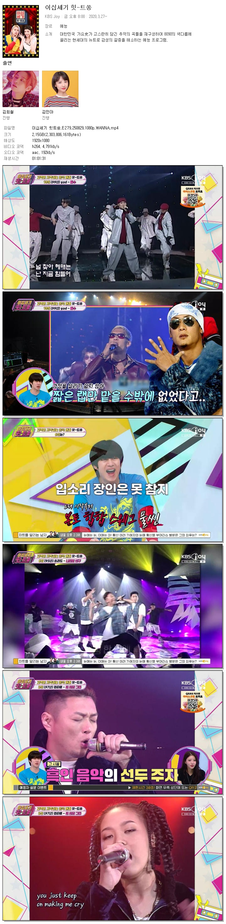 [KBS JOY] 이십세기 힛트쏭.E279.250829.1080p.WANNA[김희철, 미주]
