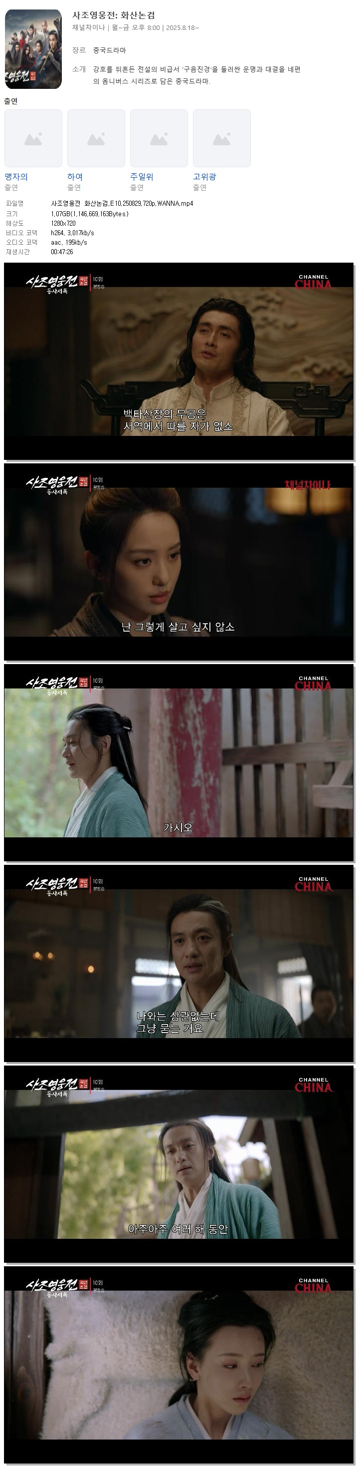 [채널차이나] 사조영웅전 화산논검.E10.250829.720p.WANNA[맹자의, 하여].mp4
