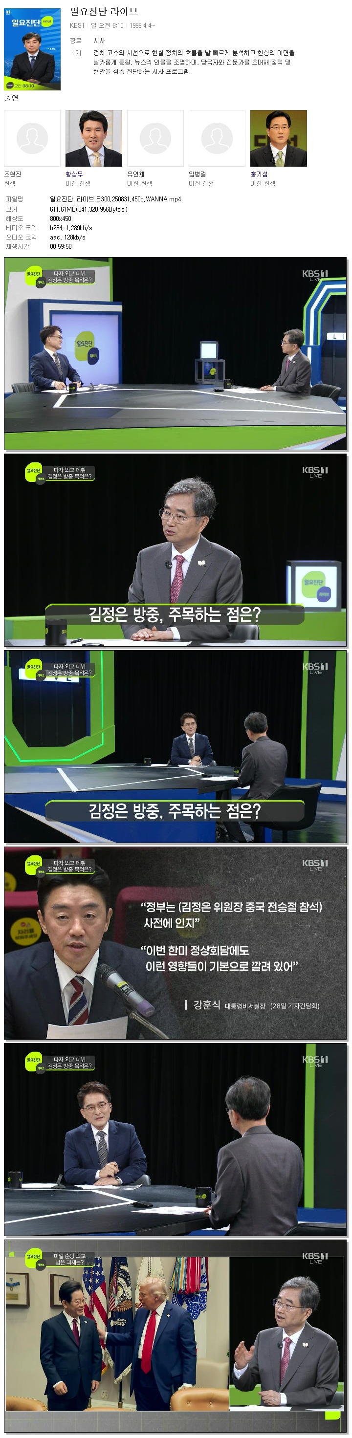 [KBS1] 일요진단 라이브.E300.250831.450p.WANNA[김대홍]