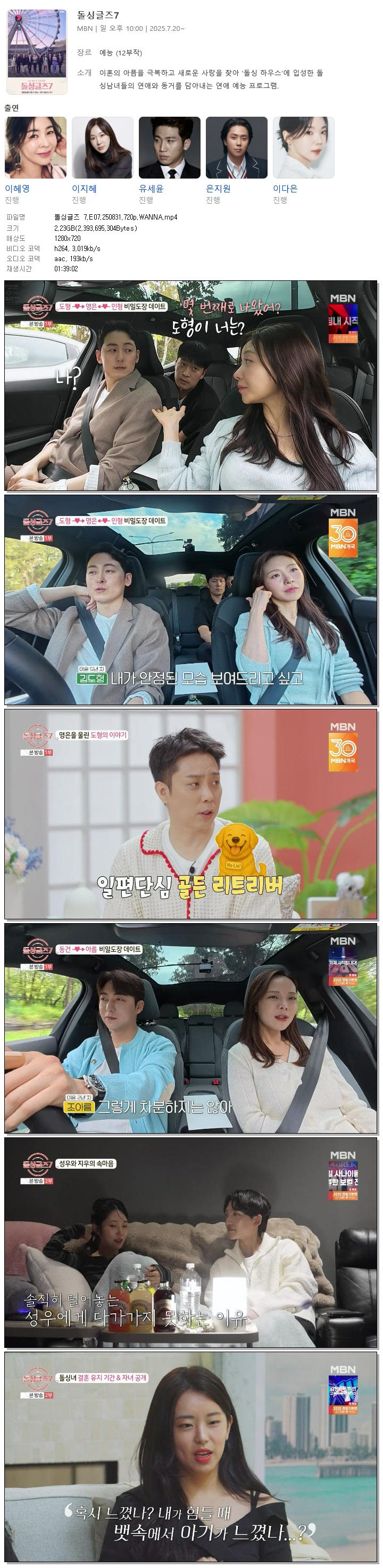 [MBN] 돌싱글즈 7.E07.250831.720p.WANNA[이혜영, 이지혜]