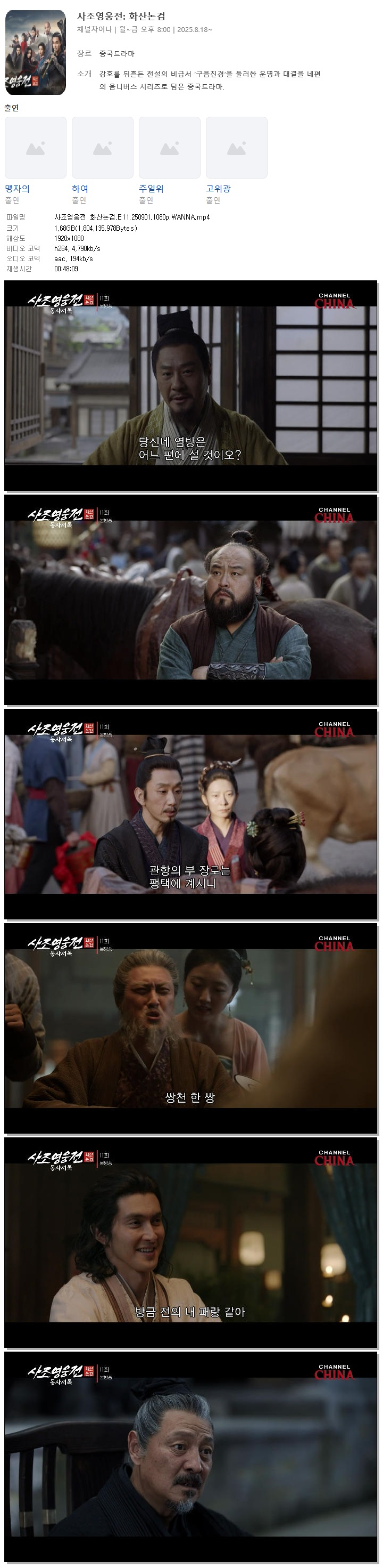 [채널차이나] 사조영웅전 화산논검.E11.250901.1080p.WANNA[맹자의, 하여]