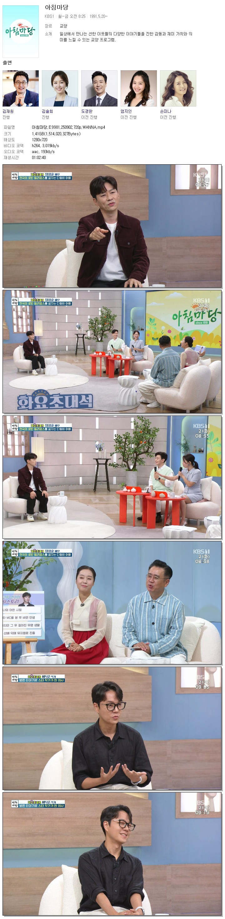 [KBS1] 아침마당.E9981.250902.720p.WANNA[김재원, 엄지인].mp4