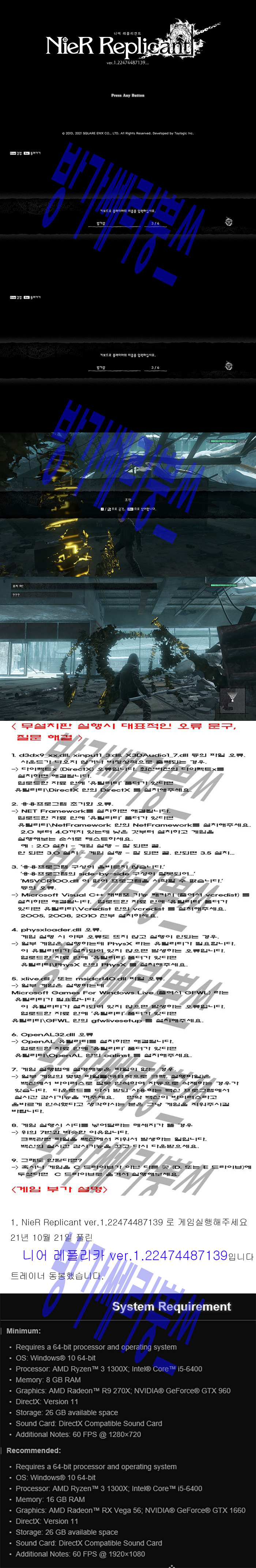 방가[한글무설치] 니어 레플리카 NieR Replicant 트레이너 동봉 21년10월자 자료